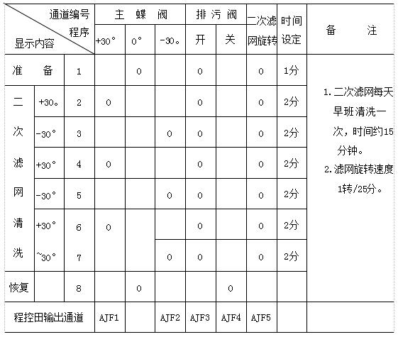 表1凝汽器二次濾網(wǎng)清洗程控程序編制表