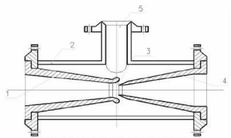 1.漸縮段;2.殼體;3.環(huán)形縫隙;4.漸擴(kuò)段;5.信號(hào)管接口