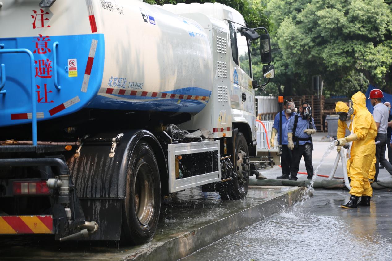 成都市武侯生態(tài)環(huán)境局、成都市她妝美谷(武侯工業(yè)園)管委會(huì)接到請(qǐng)求支援后,迅速啟動(dòng)了區(qū)級(jí)、街道應(yīng)急處置力量趕赴我司現(xiàn)場,依次進(jìn)行了突發(fā)環(huán)境事件確認(rèn)與報(bào)告、人員疏散撤離與警戒設(shè)置、應(yīng)急處置、現(xiàn)場監(jiān)測分析、處置情況跟蹤等工作。