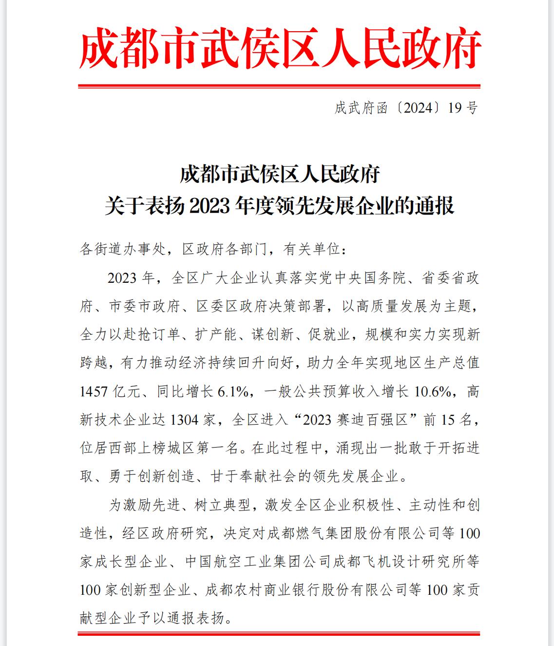 近日,成都市武侯區(qū)人民政府發(fā)布《關(guān)于表?yè)P(yáng)2023年度領(lǐng)先發(fā)展企業(yè)的通報(bào)》,文件表彰了武侯區(qū)一批敢于開拓進(jìn)取、勇于創(chuàng)新創(chuàng)造、甘于奉獻(xiàn)社會(huì)的領(lǐng)先發(fā)展企業(yè),東方凱特瑞被授予“創(chuàng)新型100強(qiáng)企業(yè)”榮譽(yù)稱號(hào),位列該榜第四十七位。